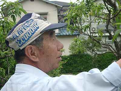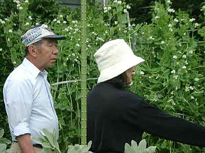 「もうすぐ 菖蒲が咲くからね。。。 マメは 全部取って良いよ」と 農園で 優しく説明してくださる akko父の ヒロシさん