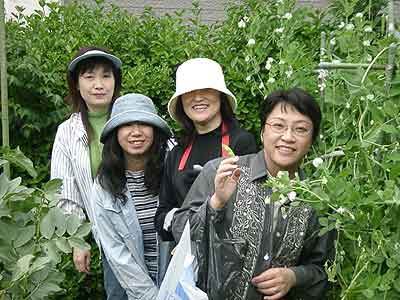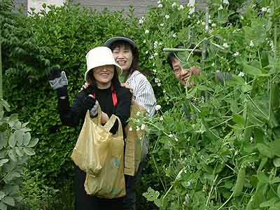 「もうすぐ 菖蒲が咲くからね。。。 マメは 全部取って良いよ」と 農園で 優しく説明してくださる akko父の ヒロシさん