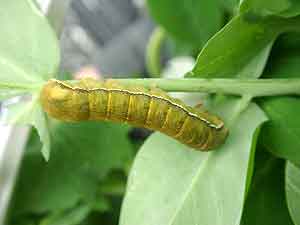 キヌサヤが とりごろ akkoさんは 毛虫が苦手。。 跳び上がって 逃げ出した PUNTさんが 見つけた 青虫ちゃん 取ったよぉ!! いっぱい もどる つぎへ