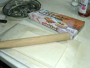 ローラーで パイシートを 少し伸ばして 適当に切り 交差するように 網掛け