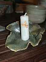 古いミシン台を 陶器の展示台として 使っているアイデアは なかなか いけてる。